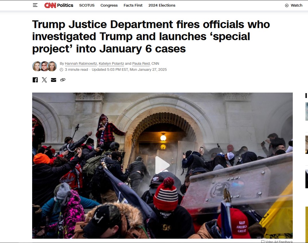 উল্লেখ্য, দায়িত্ব নেয়ার পর থেকেই ট্রাম্প প্রশাসন ৬ জানুয়ারির মামলাগুলো পুনর্বিবেচনা এবং এর সাথে জড়িত কর্মকর্তাদের উপর কঠোর নজরদারি চালানোর প্রতিশ্রুতি দিয়েছে। ট্রাম্পের এই অবস্থান তার প্রশাসনের "প্রতিশোধের রাজনীতি" এবং ভবিষ্যতে এমন পদক্ষেপ নেয়ার ইঙ্গিত দিচ্ছে।