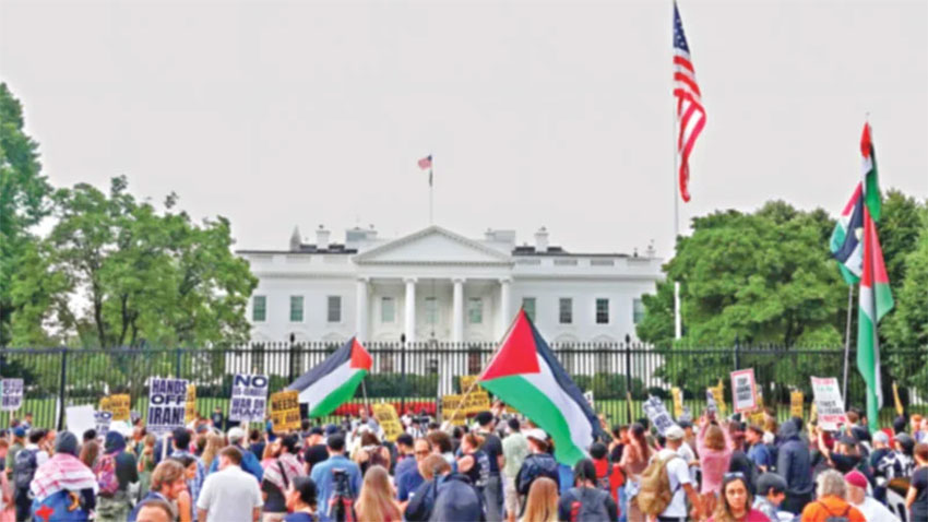 ইরানে হামলার বিরুদ্ধে ওয়াশিংটনে বিক্ষোভ
