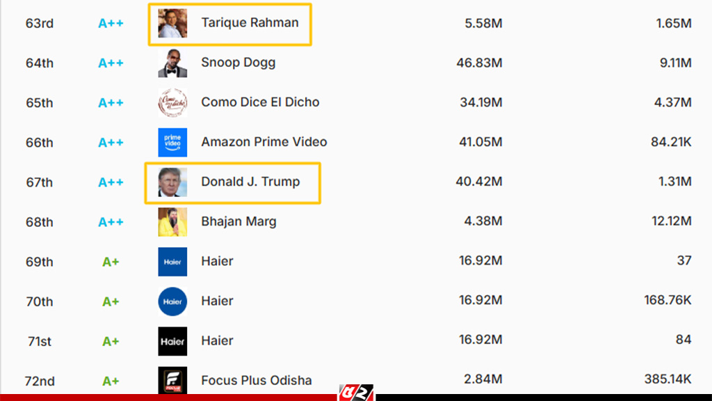 সোশাল মিডিয়া র্যাঙ্কিংয়ে ট্রাম্পকে হারিয়ে দিয়েছেন তারেক রহমান