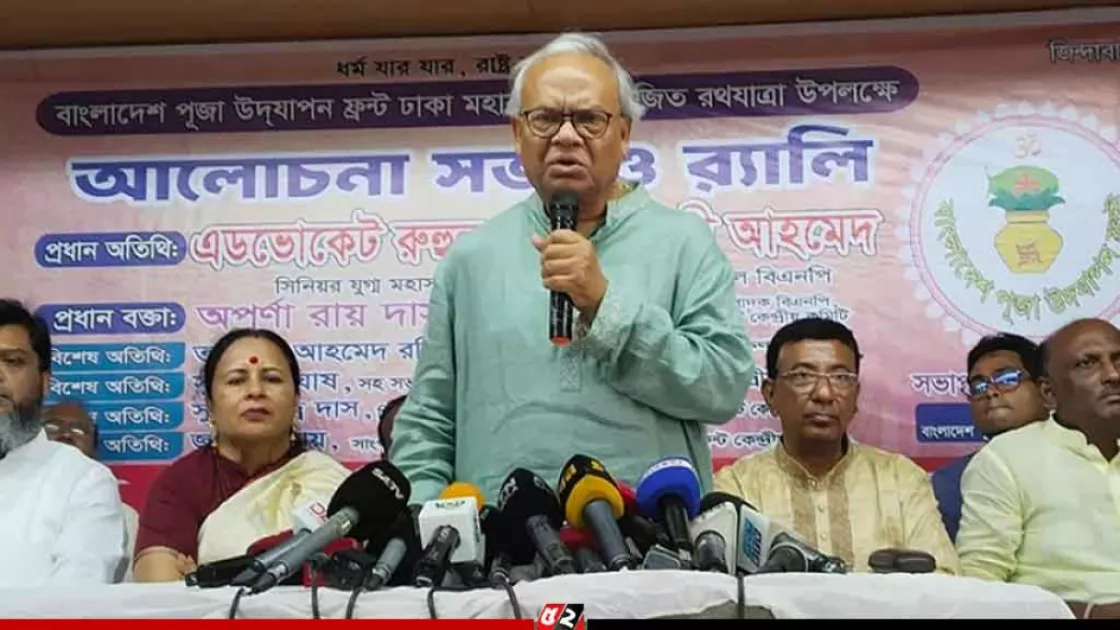 শুক্রবার (২৭ জুন) সকালে রাজধানীর নয়াপল্টনে ঢাকা মহানগর বাংলাদেশ পূজা উদযাপন ফ্রন্ট আয়োজিত রথযাত্রা উপলক্ষে আলোচনা সভায় তিনি এ মন্তব্য করেন।