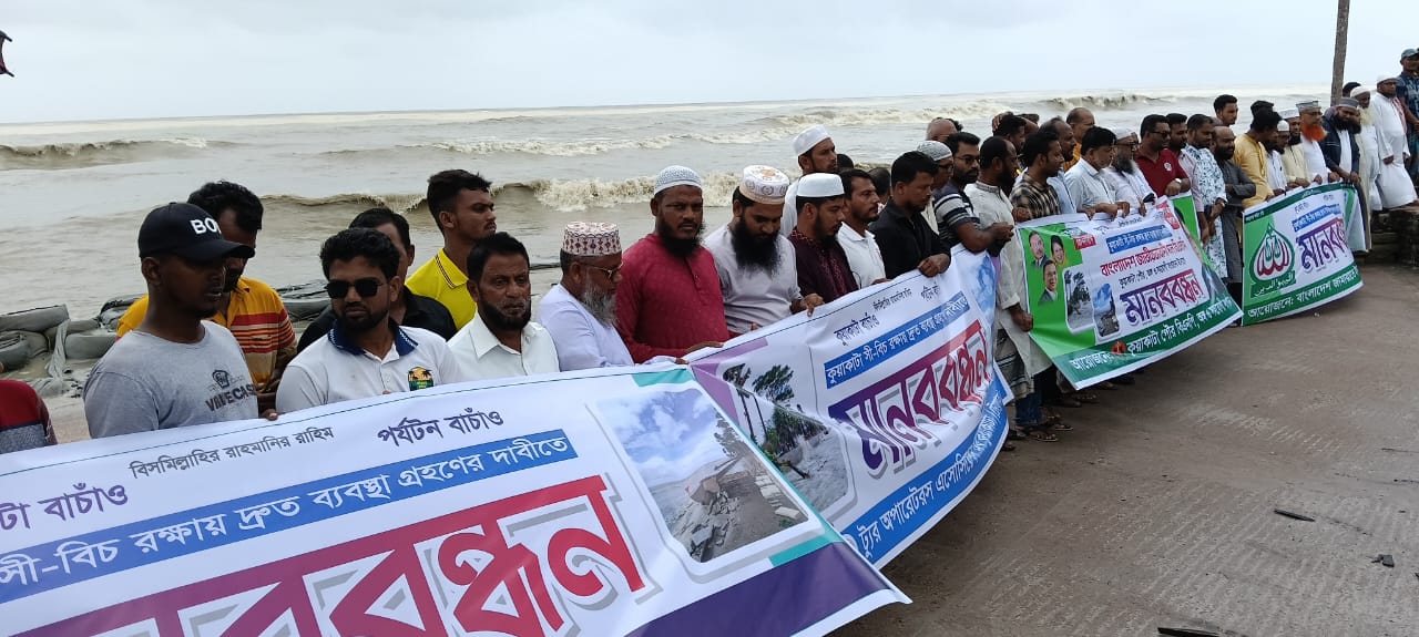 "কুয়াকাটা বাঁচাও , পর্যটন বাঁচাও" এই স্লোগানকে সামনে রেখে পটুয়াখালীর কুয়াকাটা সমুদ্রসৈকত রক্ষার দাবিতে মানববন্ধন কর্মসূচি পালন করেছে স্থানীয়রা।