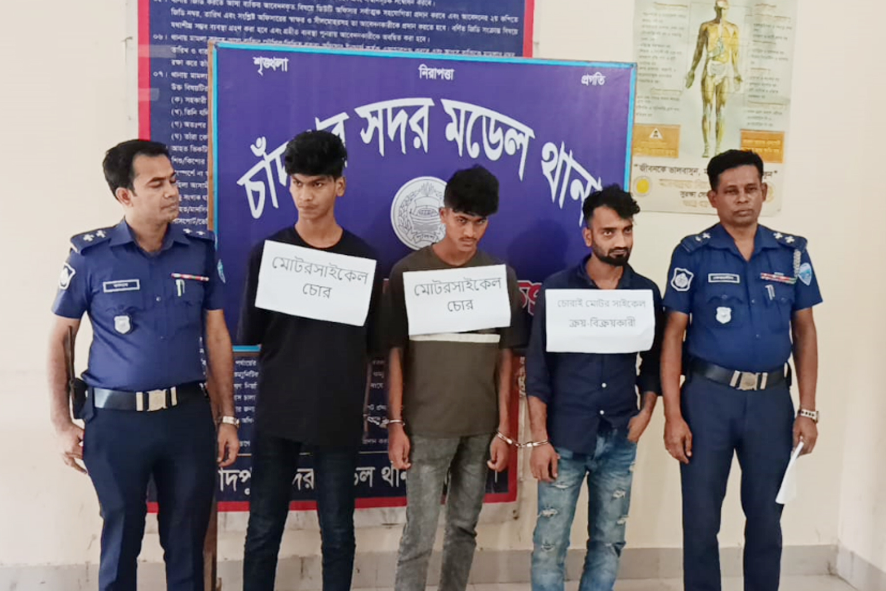 চাঁদপুরে পুলিশের অভিযানে ৬ টি চোরাই মোটরসাইকেল উদ্ধার করা হয়েছে। চুরির সাথে জড়িত চক্রের ৩ সদস্যকে আটক করা হয়েছে।