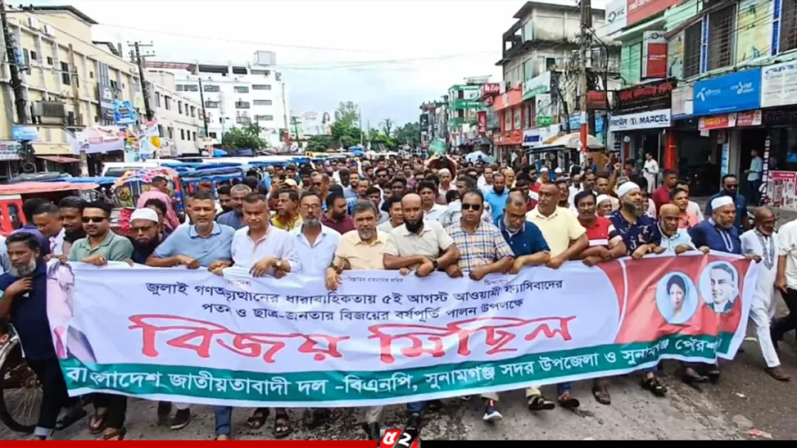 জুলাই গণঅভ্যুত্থানের ধারাবাহিকতায় আওয়ামী শাসনের পতনের বিজয়কে স্মরণ করে সুনামগঞ্জে বিজয় মিছিল করেছে সদর উপজেলা ও পৌর বিএনপি।