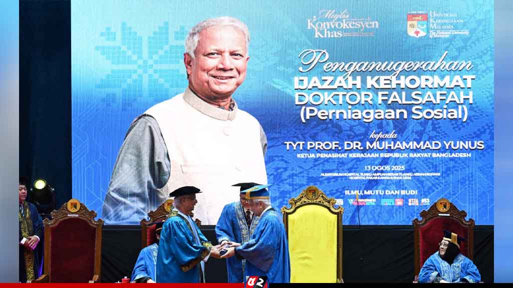 মালয়েশিয়ার জাতীয় বিশ্ববিদ্যালয় ‘ইউনিভার্সিটি কেবাংসান মালয়েশিয়া’ (ইউকেএম) প্রধান উপদেষ্টা ড. মুহাম্মদ ইউনূসকে সম্মানসূচক ডক্টরেট ডিগ্রি প্রদান করেছে।