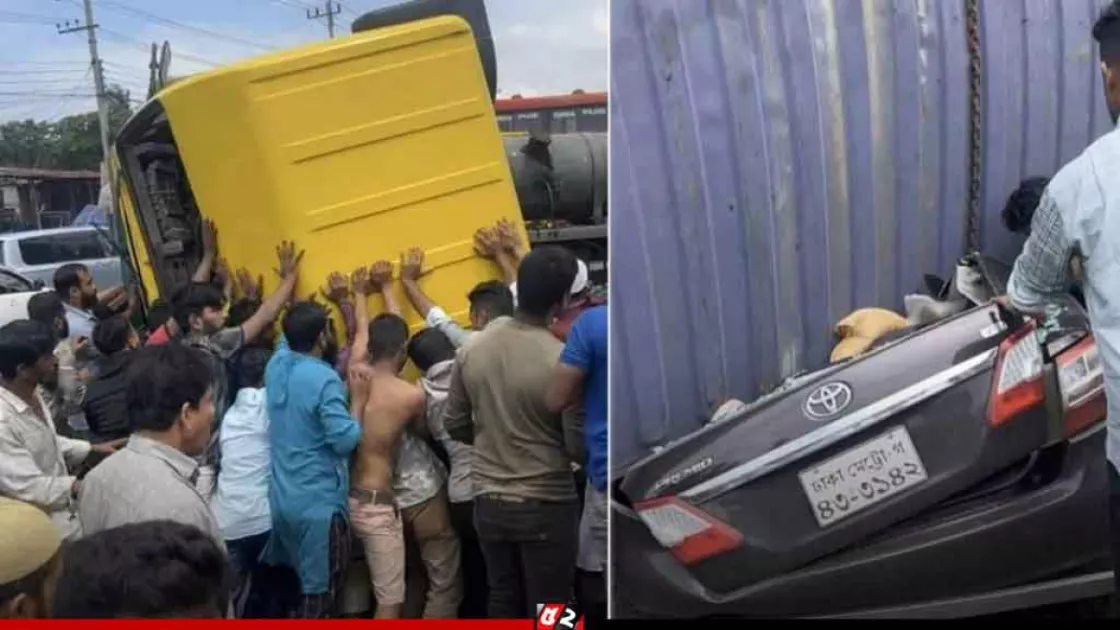 ঢাকা-চট্টগ্রাম মহাসড়কের কুমিল্লার পদুয়ার বাজার এলাকায় কাভার্ড ভ্যান উল্টে দুটি প্রাইভেটকার ও একটি সিএনজিচালিত অটোরিকশাকে চাপা দেয়ার ঘটনা ঘটেছে। এতে প্রাইভেটকারের চার যাত্রী নিহত হয়েছেন। নিহতদের মধ্যে তিন জন পুরুষ ও একজন নারী। তাৎক্ষণিক ভাবে তাদের নাম পরিচয় পাওয়া যায়নি।