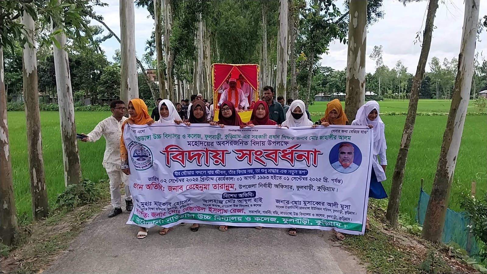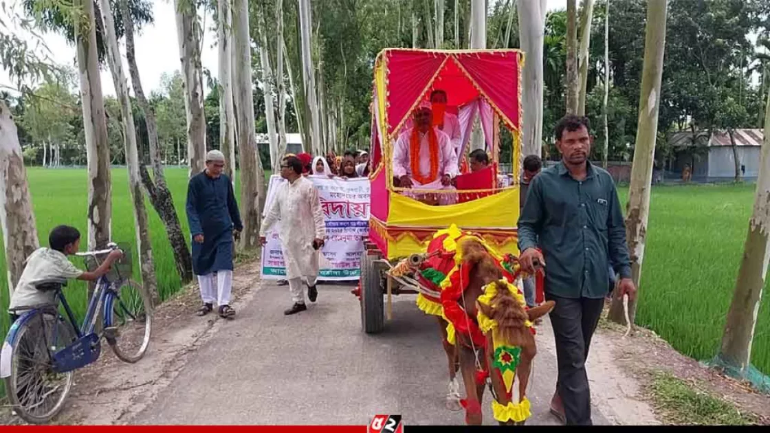কুড়িগ্রামের ফুলবাড়ী উপজেলার নাওডাঙ্গা স্কুল অ্যান্ড কলেজের সহকারী প্রধান শিক্ষক জাহাঙ্গীর আলমকে ঘোড়ার গাড়িতে চড়িয়ে রাজকীয় বিদায় জানানো হয়েছে। দীর্ঘ ৩২ বছরের শিক্ষকতা জীবনের পর তার অবসরকে কেন্দ্র করে বিদ্যালয় প্রাঙ্গণে এক আবেগঘন পরিবেশ সৃষ্টি হয়।