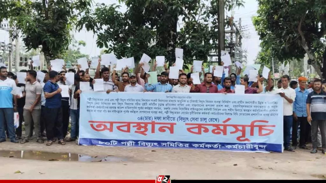 চার দফা দাবিতে সকাল থেকে অবস্থান কর্মসুচি পালন করেছে পল্লী বিদ্যুৎ সমিতির কর্মকর্তা-কর্মচারী।