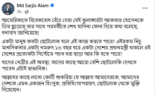 সারজিস আলমের পোস্টের হুবহু পাঠকদের জন্য তুলে ধরা হলো-