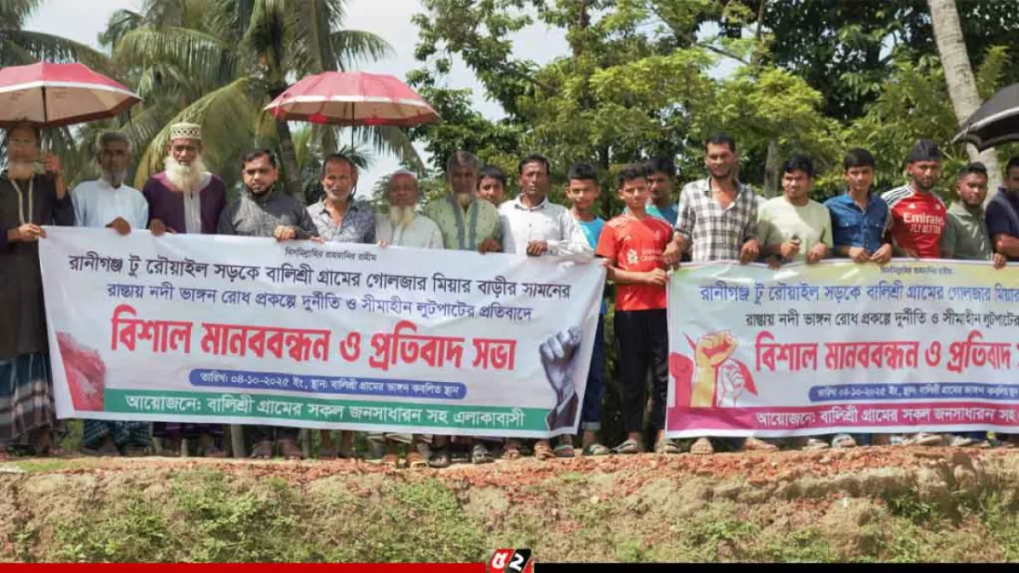 শনিবার (৪ অক্টোবর) দুপুর ১২টায় কুশিয়ারা নদীর ভাঙ্গন কবলিত স্থান বালিশ্রী গ্রামে গোলজার মিয়ার বাড়ীর সামনে মানববন্ধন অনুষ্ঠিত হয়।