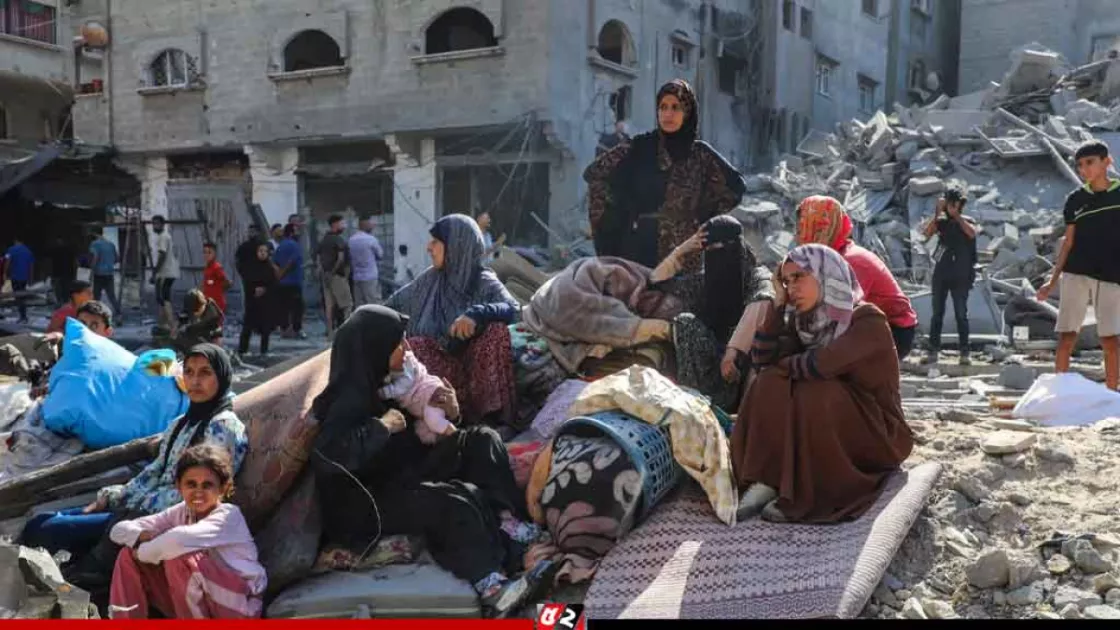 ফিলিস্তিনি বাস্তুচ্যুতরা অস্থায়ী তাঁবুতে বসবাস করছে এবং শান্তির জন্য বিশ্বনেতাদের দিকে তাকিয়ে আছে।