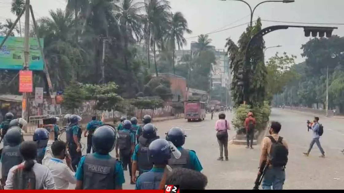 এ সময় পুলিশ তাদের লক্ষ্য করে টিয়ার শেল নিক্ষেপ করে। বর্তমানে দুই পক্ষের মধ্যে ধাওয়া-পাল্টা ধাওয়া চলছে। বর্তমানে ওই সড়কে যান চলাচল বন্ধ আছে।