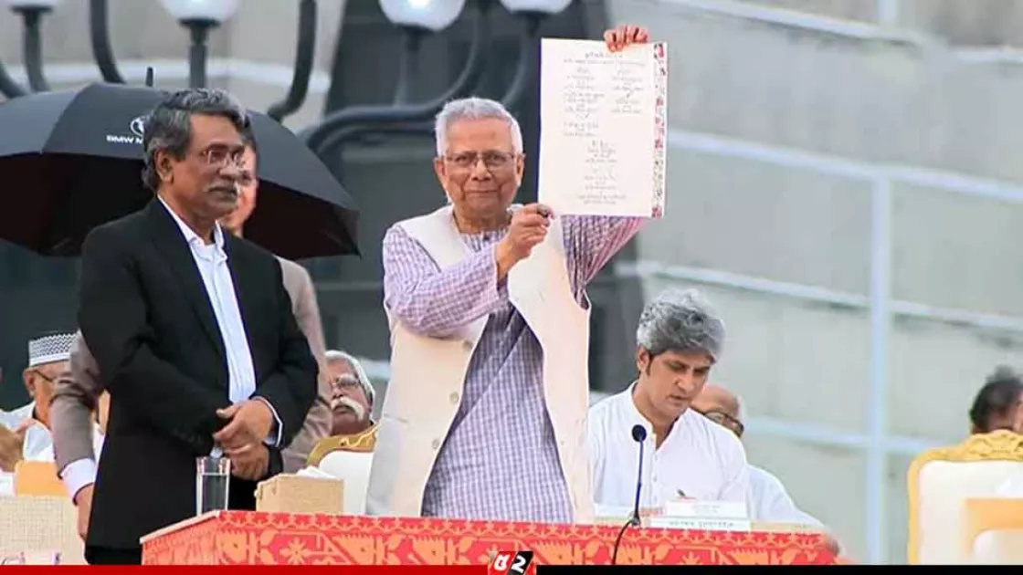 সবার শেষে স্বাক্ষর করেন অন্তর্বর্তী সরকারের প্রধান উপদেষ্টা ড. মুহাম্মদ ইউনূস।পরে তিনি স্বাক্ষরপত্রটি দেশবাসীর উদ্দেশ্যে উচু করে তুলে ধরেন।