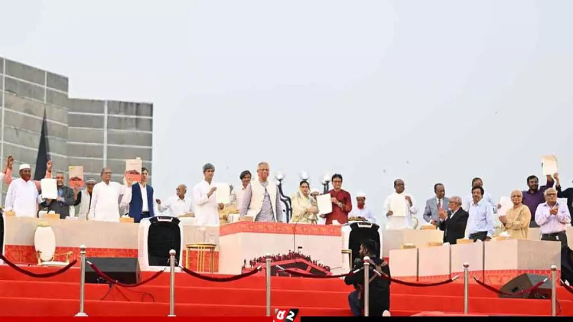 গণতন্ত্র পুনঃপ্রতিষ্ঠা, মানবাধিকার রক্ষা এবং রাষ্ট্রীয় সংস্কারের প্রতিশ্রুতি নিয়ে ‘জুলাই জাতীয় সনদ ২০২৫ বাস্তবায়নের অঙ্গীকারনামাতে স্বাক্ষর করেছেন প্রধান উপদেষ্টা ড. মুহাম্মদ ইউনূস ও দেশের ২৫ রাজনৈতিক দলের নেতারা।