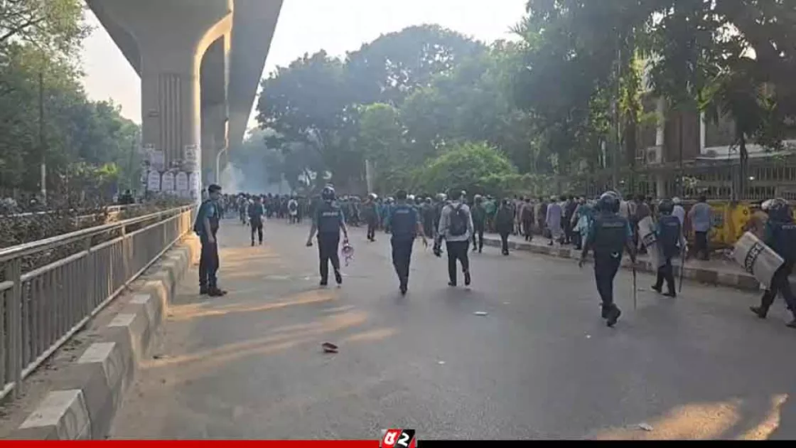 ধাওয়া খেয়ে শিক্ষকরা ঢাকা বিশ্ববিদ্যালয়ের কেন্দ্রীয় মসজিদ এলাকায় জড়ো হয়ে স্লোগান দিচ্ছেন। সেখান থেকে পরবর্তী কর্মসূচি ঘোষণা করার কথা রয়েছে।
