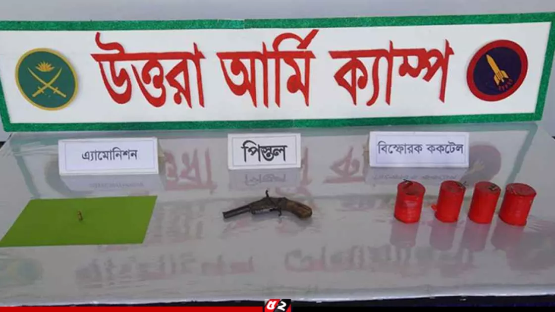 জানা গেছে, দিনাজপুর থেকে ছেড়ে আসা একতা এক্সপ্রেস ট্রেনের বেশ কয়েকটি বগি তল্লাশি চালিয়ে চালের বস্তার ভেতর থেকে একটি দেশীয় পিস্তল, এক রাউন্ড অ্যামুনিশন এবং চারটি ককটেল বোমা উদ্ধার করা হয়।এ ঘটনায় জড়িত থাকার সন্দেহে চারজনকে প্রাথমিক জিজ্ঞাসাবাদের জন্য উত্তরা আর্মি ক্যাম্পে নেওয়া হয়।