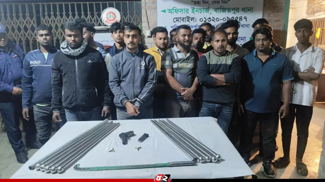 কিশোরগঞ্জের বাজিতপুরে আগ্নেয়াস্ত্র, গুলি ও দেশীয় অস্ত্রসহ ১২ দলীয় জোটের সমন্বয়ক বিএনপির মনোনয়ন প্রত্যাশী সৈয়দ এহসানুল হুদার ২২ সমর্থককে আটক করেছে যৌথবাহিনী। এ সময় তাদের কাছ থেকে একটি পিস্তল ও ৬ রাউন্ড গুলিসহ দেশীয় অস্ত্র উদ্ধার করা হয়।