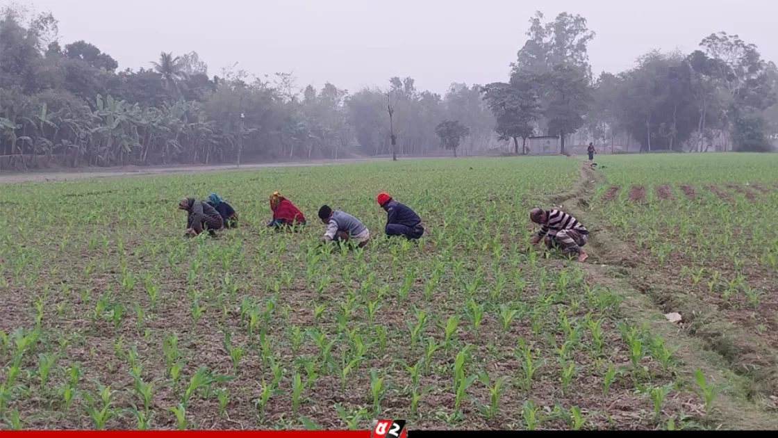 একই উপজেলার চন্দ্রখানা গ্রামের ভুট্টা চাষি হাসান আলী জানান, ‘ ৫ বিঘা জমিতে ভুট্টা রোপন করা হয়েছে। এই তীব্র শীতে ফসল রক্ষার্থে আপাতত ভুট্টা খেতে নিড়ানি দিচ্ছি। ইতোমধ্যে ৩ বিঘা জমিতে হেমের ঔষধ প্রয়োগ করা হয়েছে। ঠান্ডার প্রকোপ কমার সঙ্গে সঙ্গে হালকা সেচ দেওয়া হবে’।