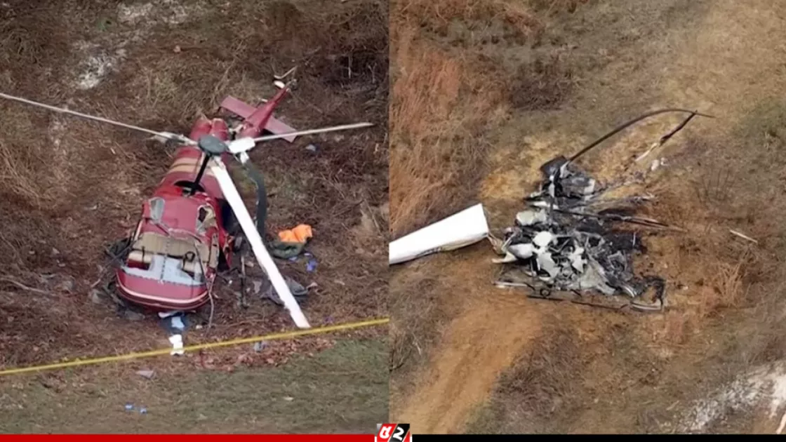 পুলিশ জানিয়েছে, মাটিতে বিধ্বস্ত হওয়ার পর একটি হেলিকপ্টারে আগুন ধরে যায়।