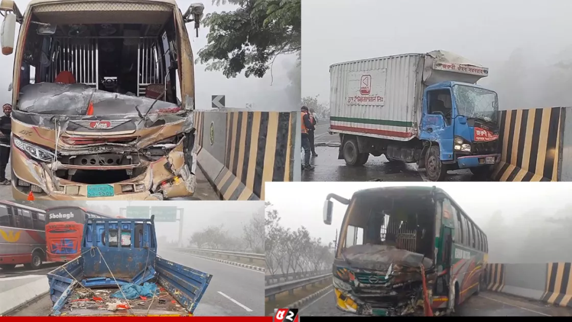 মাদারীপুরের শিবচর হাইওয়ে থানা পুলিশের ভারপ্রাপ্ত কর্মকর্তা (ওসি) জহুরুল ইসলাম গণমাধ্যমকে বিষয়টি নিশ্চিত করেন। তিনি জানান, ঘন কুয়াশার কারণে একটি বাস, একটি কাভার্ড ভ্যান ও একটি পিকআপের সংঘর্ষের ঘটনা ঘটেছে। এ ঘটনায় বেশ কয়েকজন যাত্রী সামান্য আহত হয়েছেন। সড়ক থেকে তিনটি গাড়ি উদ্ধার করে যান চলাচল স্বাভাবিক করা হয়েছে। গাড়িগুলো থানায় নিয়ে আসা হয়েছে।