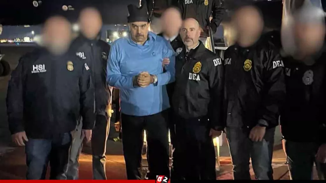 প্রায় সাত ঘণ্টা পর ট্রাম্প আরেকটি পোস্ট দেন ট্রুথ সোশ্যালে। সেখানে চোখ বাঁধা ও হাতকড়া পরা অবস্থায় ধূসর ট্রাউজার পরিহিত মাদুরোর একটি ছবি প্রকাশ করা হয়। ছবির ক্যাপশনে লেখা ছিল, ‘ইউএসএস আইও জিমা জাহাজে নিকোলাস মাদুরো।’