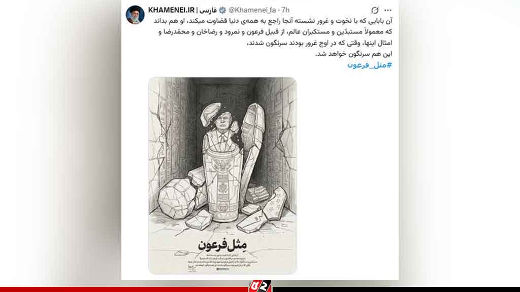 খামেনির অ্যাকাউন্টে পোস্ট করা বার্তায় বলা হয়, 'যে ব্যক্তি গর্ব ও অহমিকার সঙ্গে ওখানে বসে গোটা বিশ্বের বিচার করছেন, তার জানা উচিৎ, যে ফেরাউন, নমরুদ, রেজা খান ও মোহাম্মদ রেজার মতো পৃথিবীর সকল স্বৈরাচারী ও অহংকারী মানুষকে গৌরবের সর্বোচ্চ অবস্থান থেকে উৎখাত করা হয়েছে। একেও (ট্রাম্প) উৎখাত করা হবে।'