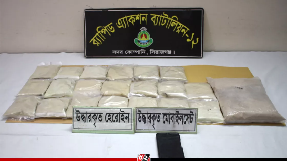 সিরাজগঞ্জের যমুনা সেতু এলাকায় প্রায় ৩ কেজি ৯০ গ্রাম হেরোইনসহ এক মাদক ব্যবসায়ীকে গ্রেপ্তার করেছে র্যাপিড অ্যাকশন ব্যাটালিয়ন (র্যাব-১২)। উদ্ধারকৃত মাদকের আনুমানিক বাজারমূল্য প্রায় ৩ কোটি টাকা। এ সময় মাদক পরিবহনের দায়ে দিনাজপুর জেলার বীরগঞ্জ থানার মাটিকুড়া গ্রামের বাসিন্দা মো. ইসমাইল হোসেন (৩১) কে গ্রেপ্তার করা হয়।