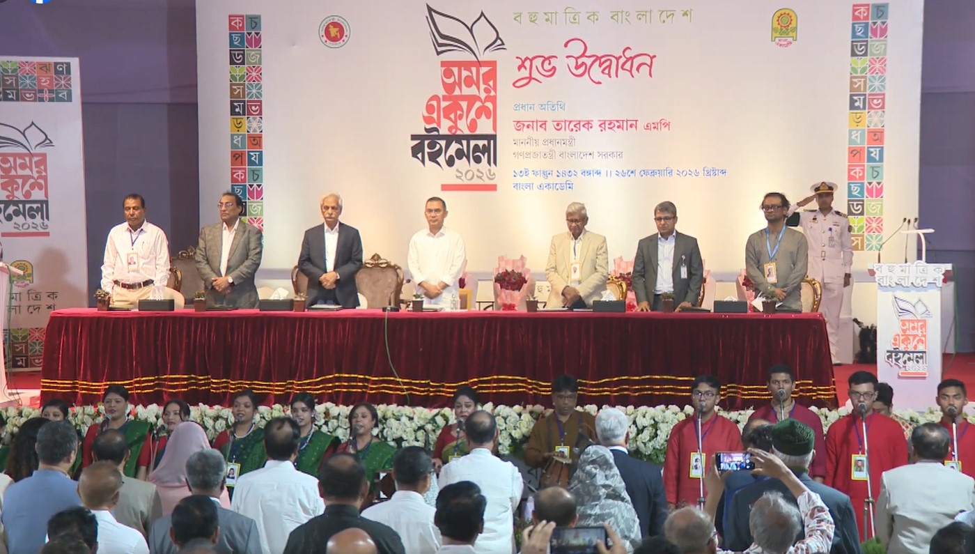 ‘বহুমাত্রিক বাংলাদেশ’ প্রতিপাদ্যকে সামনে রেখে মাসব্যাপী অমর একুশে বইমেলা ২০২৬ এর উদ্বোধন করেছেন প্রধানমন্ত্রী তারেক রহমান। বৃহস্পতিবার (২৬ ফেব্রুয়ারি) বাংলা একাডেমি প্রাঙ্গণে আয়োজিত অনুষ্ঠানে প্রধান অতিথি হিসেবে তিনি মেলার আনুষ্ঠানিক উদ্বোধন ঘোষণা করেন।