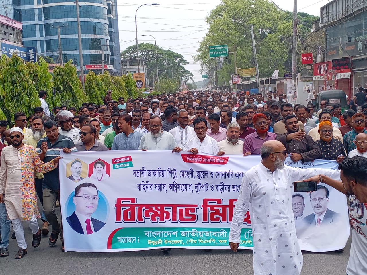 বিএনপি নেতারা জানান, চাঁদ রাতে ঈশ্বরদী শহরের বিভিন্ন এলাকায় বিএনপির একাধিক নেতাকর্মীর বাড়িতে হামলা, ভাঙচুর ও গুলিবর্ষণের ঘটনা ঘটে। এসব ঘটনার প্রতিবাদে সোমবার দুপুরে পোস্ট অফিস মোড়ে দলীয় কার্যালয়ে সংবাদ সম্মেলন শেষে বিক্ষোভ মিছিল বের করেন বিএনপি নেতাকর্মীরা।