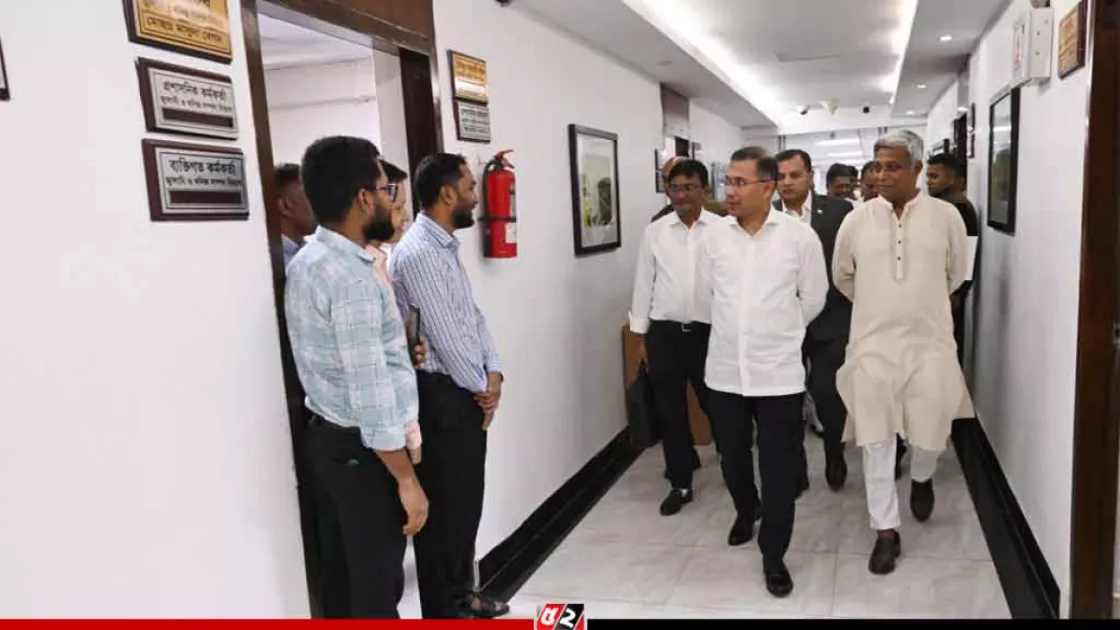 রোববার সকালে হঠাৎ করেই সচিবালয়ের বিভিন্ন মন্ত্রণালয়ে পরিদর্শনে যান প্রধানমন্ত্রী তারেক রহমান। এ সময় তিনি কর্মকর্তা-কর্মচারীদের উপস্থিতি ও দাপ্তরিক কার্যক্রম সরেজমিনে খতিয়ে দেখেন।