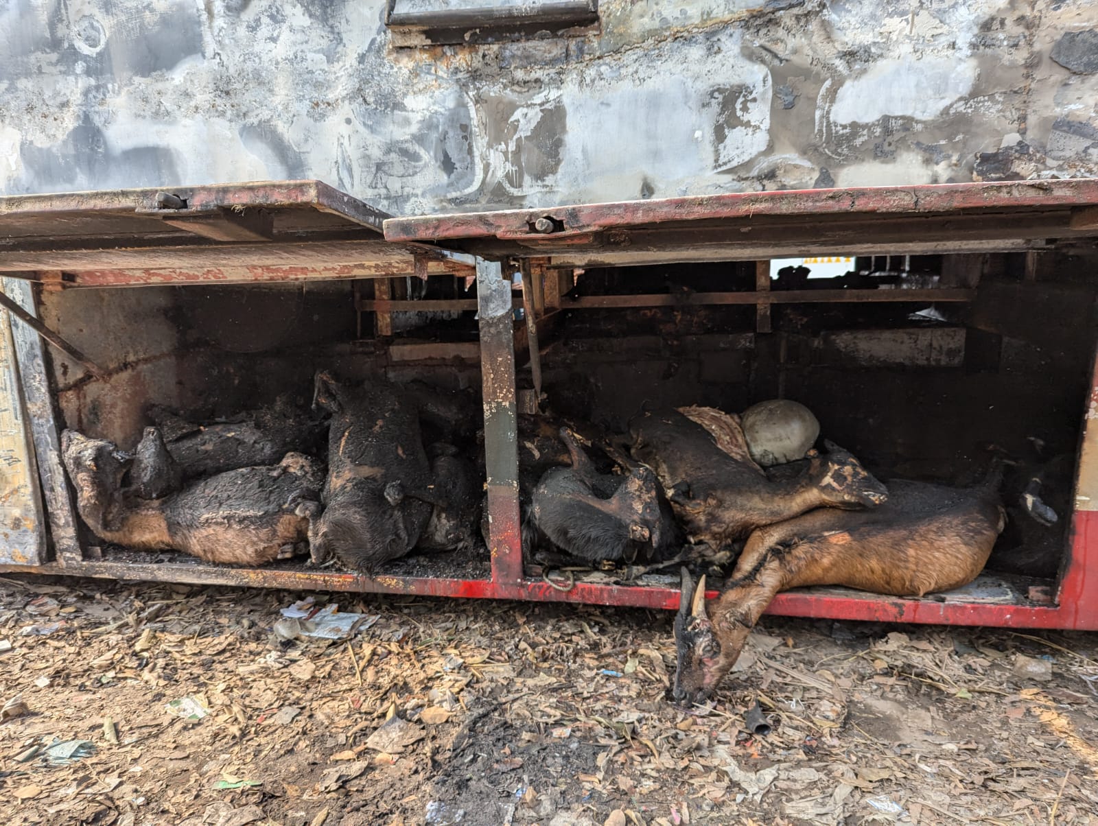 অ্যাম্বুলেন্সে বিষ্ফোরণ: মানুষের সঙ্গে পুড়লো অর্ধশতাধিক ছাগল