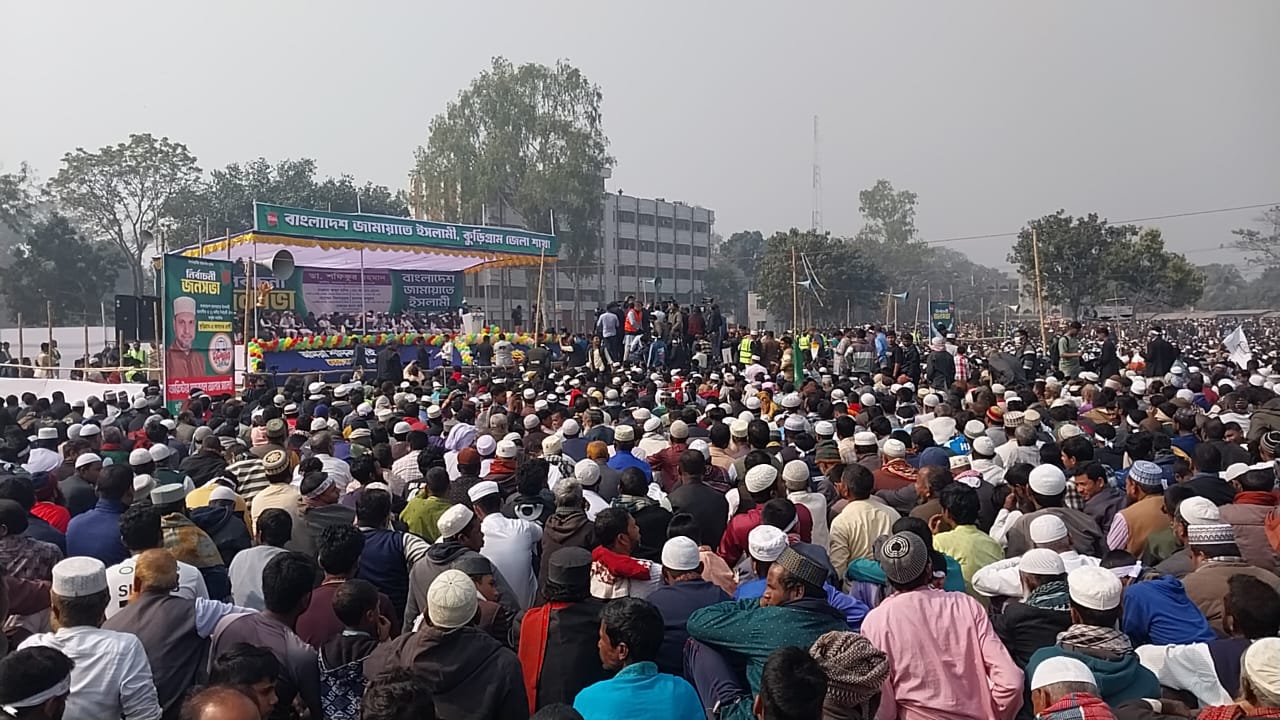 সমাবেশে কুড়িগ্রামে জামায়াত মনোনীত প্রার্থীরা বক্তব্য রাখেন।