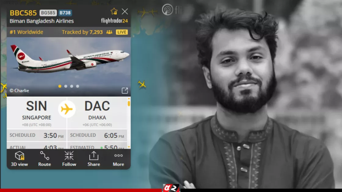 বিমান বাংলাদেশ এয়ারলাইন্সের বিজি-৫৮৫ ফ্লাইটটি শুক্রবার (১৯ ডিসেম্বর) বাংলাদেশ সময় দুপুর ২টা ৩ মিনিটে সিঙ্গাপুরের চাঙ্গি আন্তর্জাতিক বিমানবন্দর থেকে ঢাকার উদ্দেশে উড্ডয়ন করে। ফ্লাইটটি সন্ধ্যা ৫টা ৫০ মিনিটের দিকে হযরত শাহজালাল আন্তর্জাতিক বিমানবন্দরে অবতরণের কথা রয়েছে।