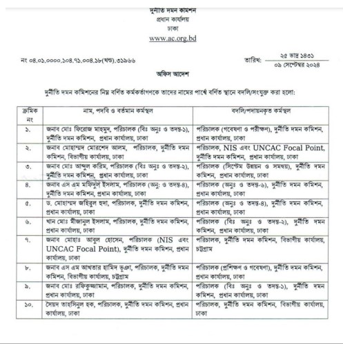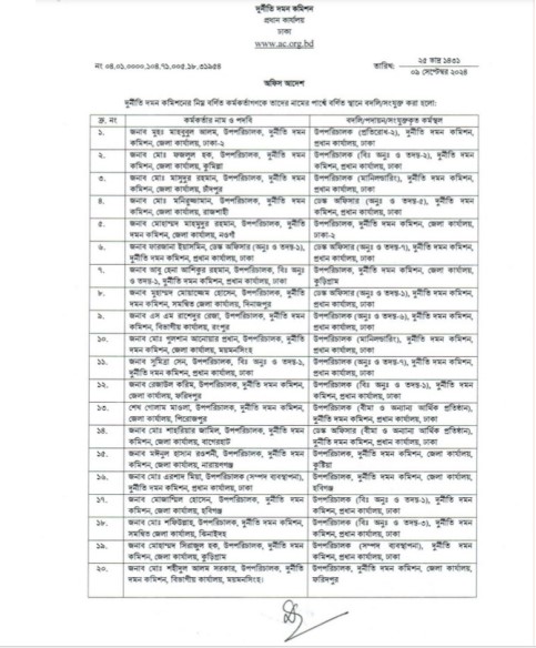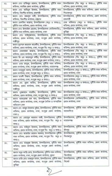বদলিকৃতদের ঢাকা, রাজশাহী, ময়মনসিংহ, সিলেট, নারায়ণগঞ্জ, কুমিল্লা, কুড়িগ্রাম, দিনাজপুর, নওগাঁ, খুলনা ও চাঁদপুরের বিভিন্ন অফিসে পাঠানো হয়েছে।