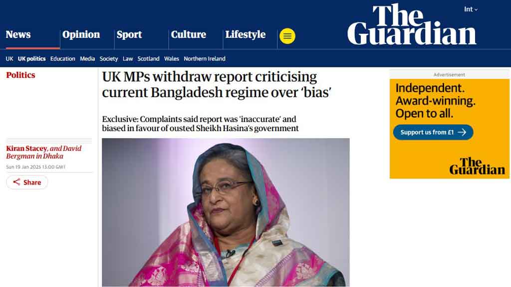 তবে সেই প্রতিবেদন কবে প্রত্যাহার করা হয়েছে গার্ডিয়ানের রোববারের খবরে তা বলা হয়নি।