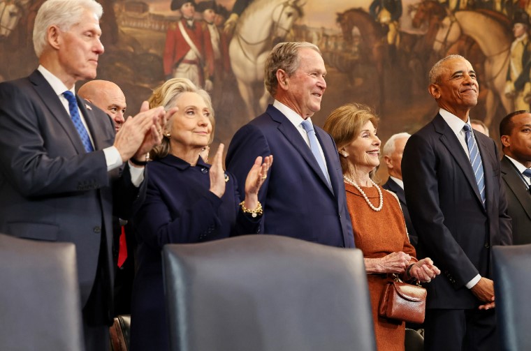 ট্রাম্প শপথ অনুষ্ঠানস্থলে আসার আগে সেখানে উপস্থিত হন দেশটির সাবেক প্রেসিডেন্ট বিল ক্লিনটন, সাবেক ফার্স্ট লেডি ও সাবেক পররাষ্ট্রমন্ত্রী হিলারি ক্লিনটন, সাবেক প্রেসিডেন্ট জর্জ ডব্লিউ বুশ ও সাবেক ফার্স্ট লেডি লরা বুশ এবং সাবেক মার্কিন প্রেসিডেন্ট বারাক ওবামা।