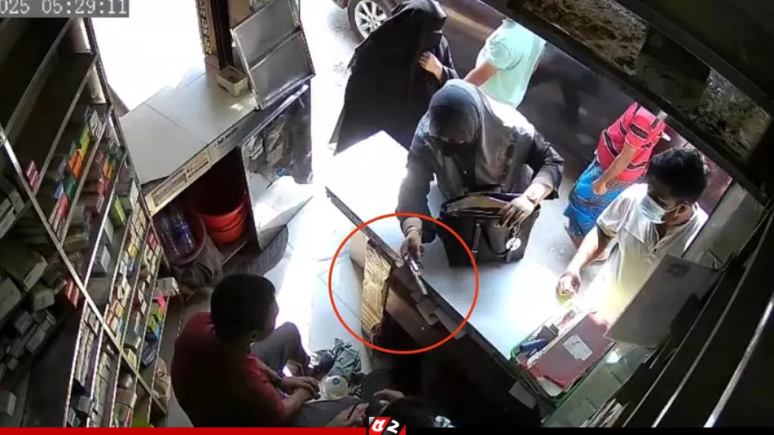 জানা যায়, এরপরই তিনি দোকানে থাকা কর্মীদের সামনে ভ্যানিটি ব্যাগ থেকে একটি পিস্তল বের করে হত্যার হুমকি দেন। পুরো ঘটনাটি সিসিটিভিতে ধরা পড়ে এবং দ্রুত এলাকায় ব্যাপক আলোচনার জন্ম দেয়।