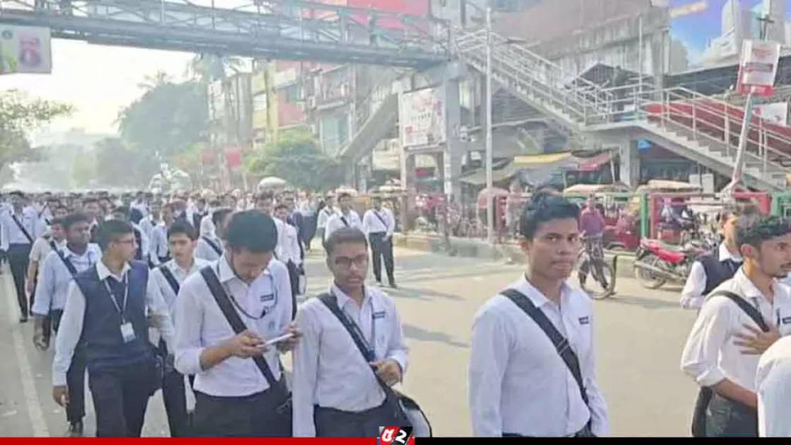 ঢাকা কলেজের উচ্চমাধ্যমিক শ্রেণির শিক্ষার্থীরা প্রস্তাবিত ‘ঢাকা সেন্ট্রাল ইউনিভার্সিটি’ এর স্কুলিং মডেল বাতিলের দাবিতে রাজধানীর সায়েন্সল্যাব মোড়ে অবস্থান নিয়েছে।