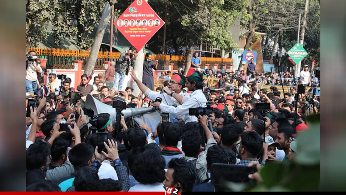 এর আগে শিক্ষা ভবনের সামনে মিছিলটি পৌছালে তাতে বাঁধা দেয় পুলিশ। সেখানে সংক্ষিপ্ত সমাবেশে ভিপি সাদিক কায়েম বলেন, যারা ওসমান হাদিকে হামলা করেছে, যারা পরিকল্পনায় ছিল সবাইকে গ্রেপ্তার করতে হবে। নিষিদ্ধ লীগের নেতাদের গ্রেপ্তার করতে হবে। সময় বেধে দেয়া হবে স্বরাষ্ট্র মন্ত্রণালয়কে, এর মধ্যে পদক্ষেপ না নিলে সারা দেশে বিক্ষোভ কর্মসূচির ঘোষণা দেয়া হবে।