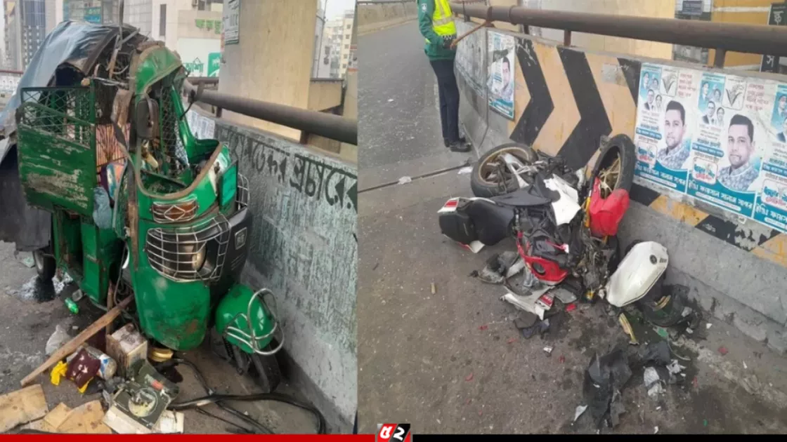 বৃহস্পতিবার (০১ জানুয়ারি) ভোর পৌনে ৫টার দিকে ফ্লাইওভারটির মৌচাক অংশে এই দুর্ঘটনা ঘটে। মুমূর্ষু অবস্থায় দুজনকে উদ্ধার করে ঢাকা মেডিকেল কলেজ হাসপাতালে নিয়ে আসলে চিকিৎসক মৃত ঘোষণা করেন। দুর্ঘটনায় নিহতরা হলেন- অটোরিকশার চালক নয়ন তালুকদার (৭০) ও মোটরসাইকেল চালক ইয়াসিন আরাফাত আশিক (২১)।