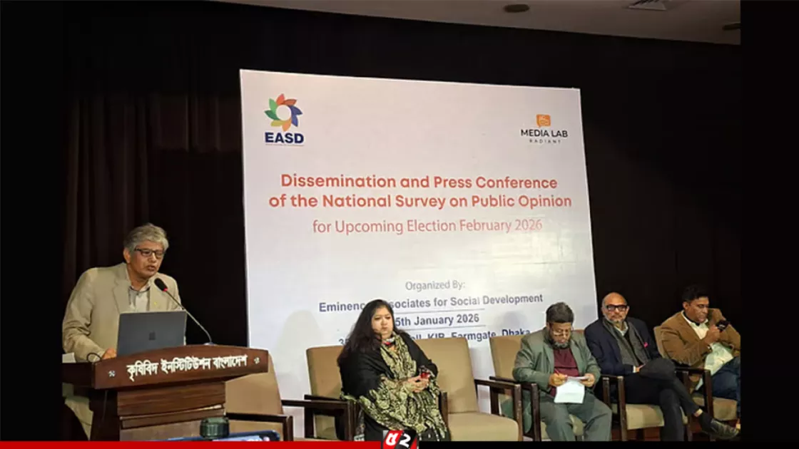 বেসরকারি সংস্থা এমিনেন্স অ্যাসোসিয়েটস ফর সোশ্যাল ডেভেলপমেন্ট (ইএএসডি) জানিয়েছে, আসন্ন ত্রয়োদশ জাতীয় সংসদ নির্বাচনে দেশের প্রায় ৭০ শতাংশ মানুষ বিএনপিকে, ১৯ শতাংশ মানুষ জামায়াতকে এবং নতুন দল এনসিপিকে (জাতীয় নাগরিক পার্টি) ২ দশমিক ৬ শতাংশ মানুষ ভোট দিতে চান।