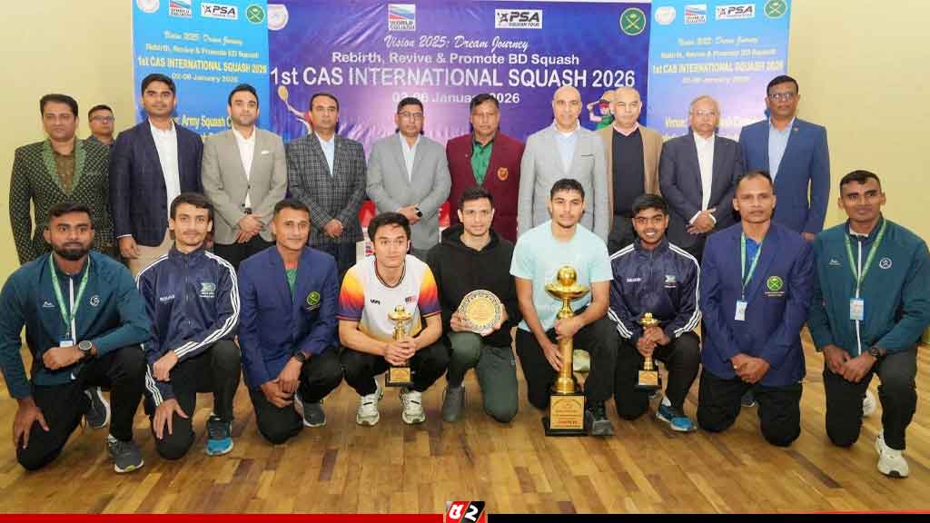 ঢাকা সেনানিবাসস্থ আর্মি স্কোয়াশ কমপ্লেক্সে গত মঙ্গলবার (০৬ জানুয়ারি) পাঁচ দিনব্যাপী ‘১ম সিএএস আন্তর্জাতিক স্কোয়াশ প্রতিযোগিতা-২০২৬’ এর সমাপনী ও পুরস্কার বিতরণী অনুষ্ঠিত হয়েছে।