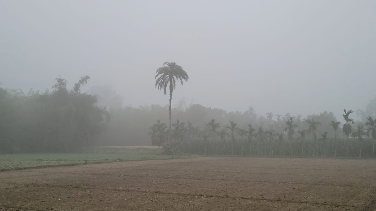 কুয়াশার চাদরে পথঘাট -ফসলের মাঠগুলো ঢেকে যায় সাদা আবরণে যেন এক শীতের সকালের দৃশ্যপট দেখছেন জনপদের মানুষ। তবে এই কুয়াশায় হালকা শীতের তীব্রতা ছিল। পরে সকাল ৮টার মধ্যেই কুয়াশা ভেদ করে উঁকি দেয় সূর্য। এরপর পর দুপুর দুইটা পর্যন্ত আকাশে সূর্যের আলো ছড়াতে দেখা যায়নি। দুপুরে পর আকাশ মেঘাচ্ছন্ন থাকলেও কিছুটা ভ্যাপসা গরমে কিছুটা অস্বস্তি দেখা দেয়।